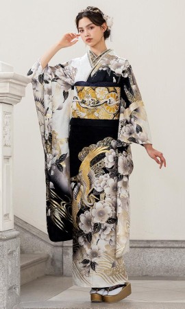 黒と白の染めわけに金彩のバラが個性的で鮮烈な印象が残る振袖。バラの女王のような魅惑の振袖でまばゆいほどの輝きを解き放つ!成人式は人生で一度のファッションショー!