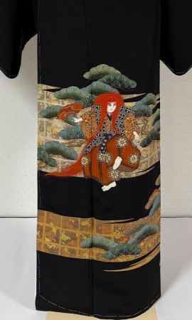 江戸時代から形成された、歌舞伎の赤獅子をイメージした手描きの作家物作品です。千秋万歳を願った格調高く、慶祝の時にも上品さが香り立つ留袖です。
