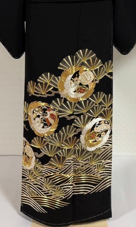 金駒刺繍と全面を刺繍で施した豪華絢爛な留袖です。菊、藤、梅、橘など格調高い文様に、末広がりの扇面松が、華やかで上品な留袖です。