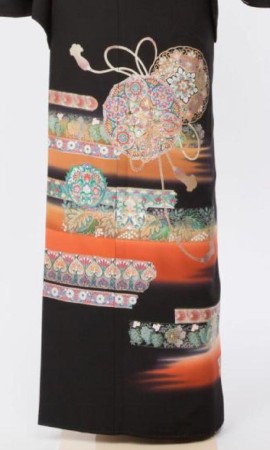 オリエンタル調の個性的なお柄に美しい鏡文の留袖です。鏡文の中には、七色に輝くラデンが散りばめられ魅力的です。おすすめ世代:40代~50代